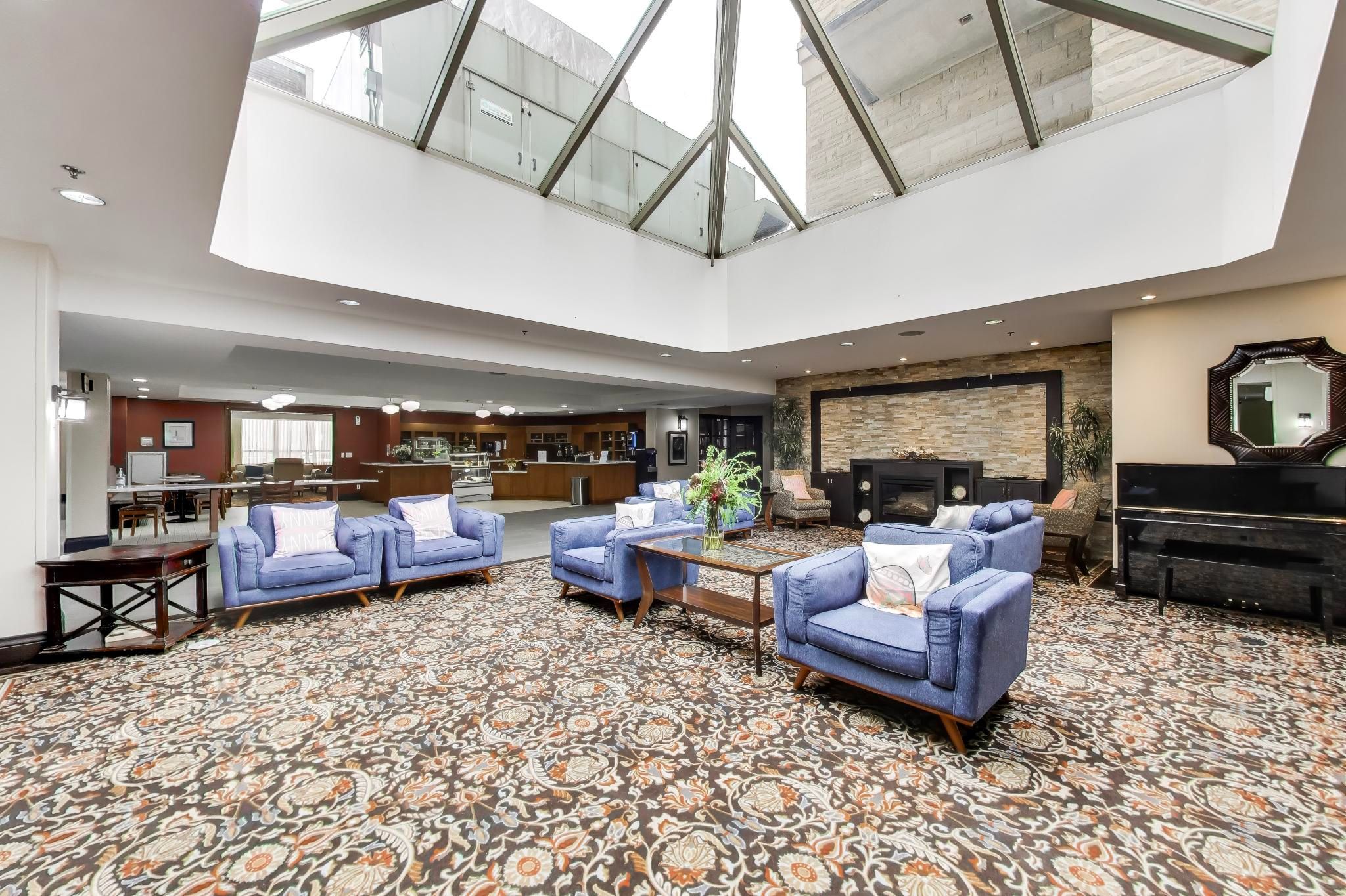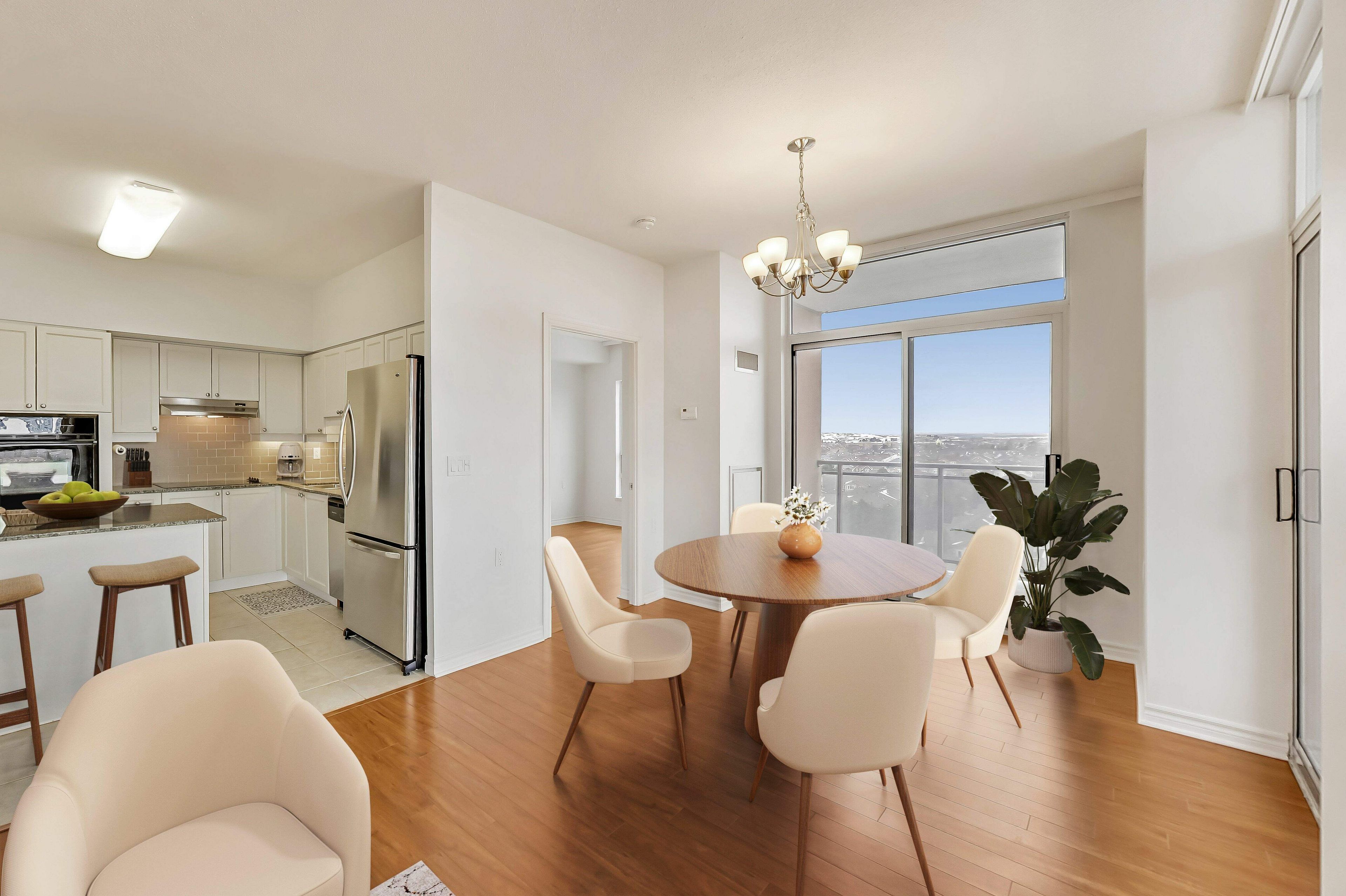 Welcome to Origin Evergreen. A fabulous lifestyle residence designed for comfort, and ease of living. This well laid out corner suite offers two generous bedrooms, two full bathrooms, and no wasted space. Large picture windows throughout invite abundant natural light throughout the day, while the open living and dining areas are perfect for nestling in or easy entertaining. Step out from the living and dining areas onto the spacious wrap-around balcony, where you can enjoy your morning coffee or share a leisurely lunch with a friend. From this vantage point, the suite overlooks a peaceful, family-friendly neighbourhood, offering a pleasant and ever-changing view of the surrounding community. Residents enjoy access to an extraordinary 40,000 square feet of amenities designed to enrich daily living. On-site restaurants and cafes offer convenient dining options just steps away, while spa and hairdressing services make it easy to enjoy a little pampering close to home. Stay active with two fully equipped fitness centres and an indoor saltwater pool, or spend time with neighbours in the games room featuring billiards and even a bowling alley.For quieter moments, there is a welcoming library, an art studio and craft kitchen for creative pursuits, and a gardening centre for those who love tending to plants. Private seating areas and beautifully maintained gardens throughout the grounds provide peaceful places to relax, read, or connect with friends. This is truly adult lifestyle living at its finest-where thoughtful design, vibrant amenities, and a welcoming community come together to create a place that truly feels like home. Note: Internet, Cable, Gas, Water, Common Elements, Building Insurance and Parking are included in maintenance fees.